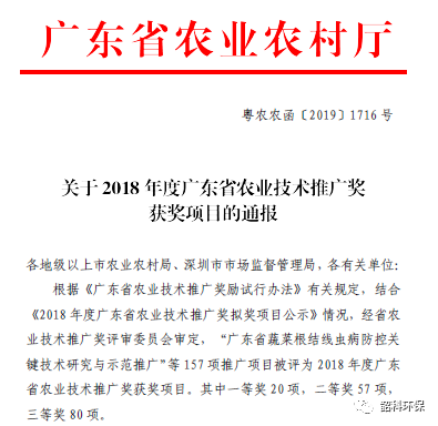 我司參與的課題榮獲廣東省農業廳技術推廣二等獎